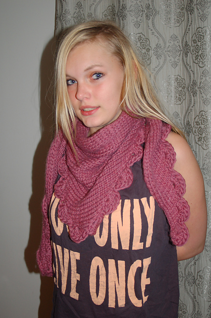 Sjal strikket i Eskimo,oppskriften er fra Drops